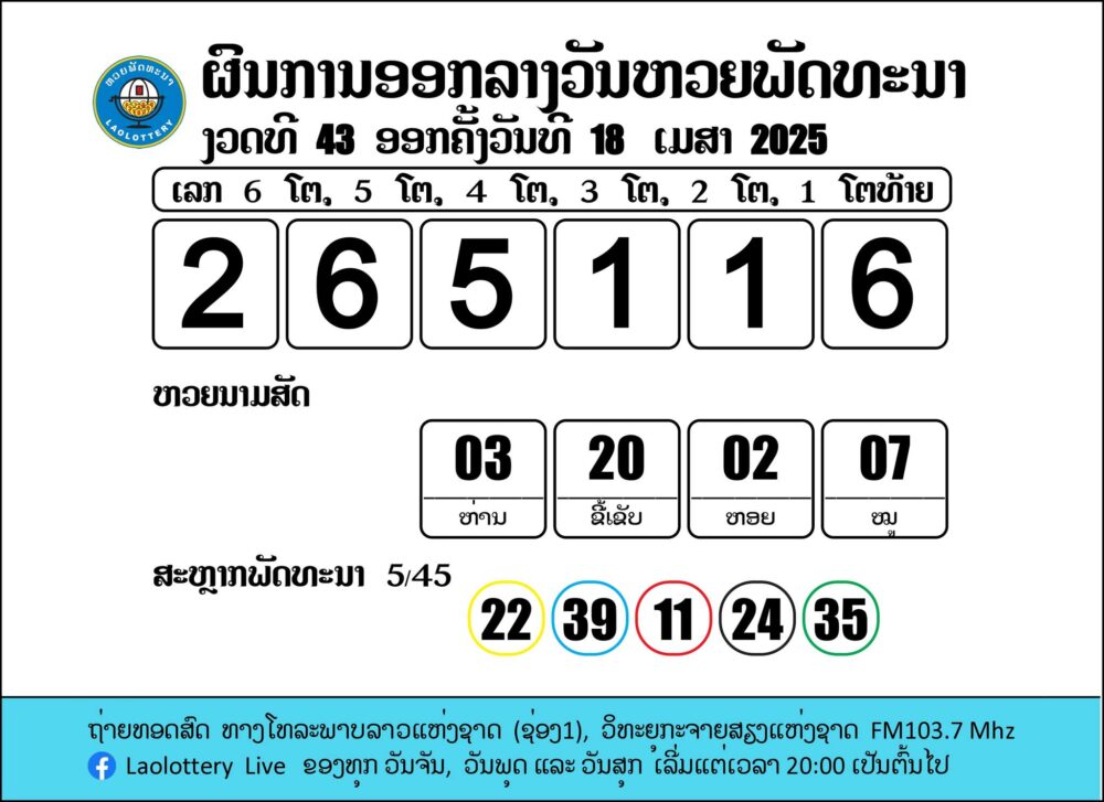 ຖ່າຍທອດສົດການອອກເລກລາງວັນຫວຍພັດທະນາ 18/4/2025