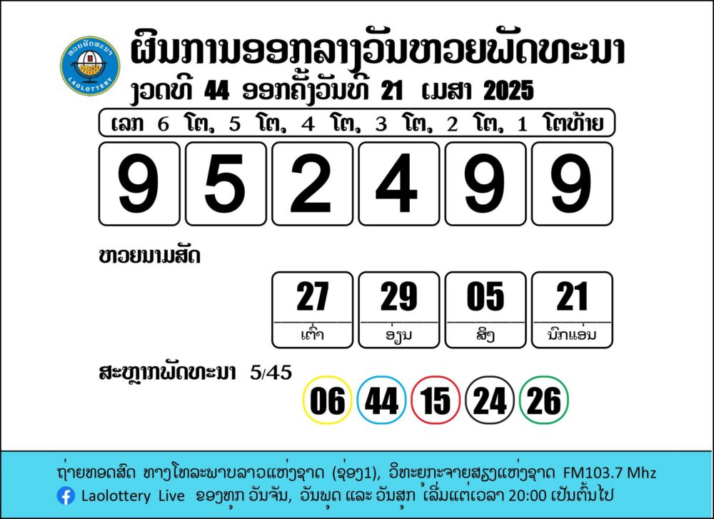 ຖ່າຍທອດສົດການອອກເລກລາງວັນຫວຍພັດທະນາ 21/4/2025
