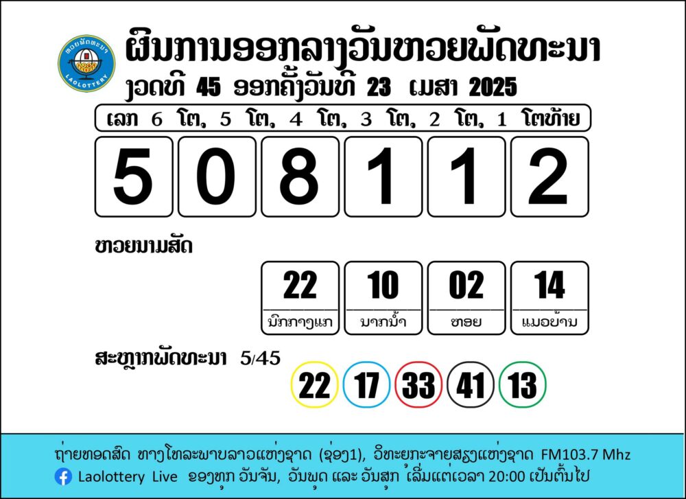 ຖ່າຍທອດສົດການອອກເລກລາງວັນຫວຍພັດທະນາ 23/4/2025