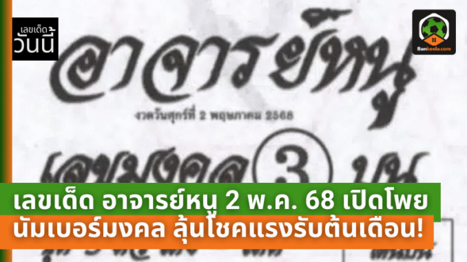 เปิดศักราชหวยเดือนพฤษภาคมกันอย่างเข้มข้น! คอหวยสายแม่นต้องไม่พลาดกับ เลขเด็ด จาก “อาจารย์หนู” เจ้าของตำนานเลขขลังที่ครองใจนักเสี่ยงโชคมาหลายยุคหลายสมัย งวดประจำวันที่ 2 พฤษภาคม 2568 นี้ อาจารย์หนูปล่อยโพยเด่นออกมาแล้วอย่างชัดเจน พร้อมแนวทางเต็มรูปแบบทั้งเลขมงคลหลักเดียว เลขท้ายสองตัว และเลขท้ายสามตัวแบบเน้นๆ ไม่มีเลขเบิ้ลให้ชวนสับสน เหล่าเอฟซีที่ตามผลงานต่อเนื่องสบายใจได้