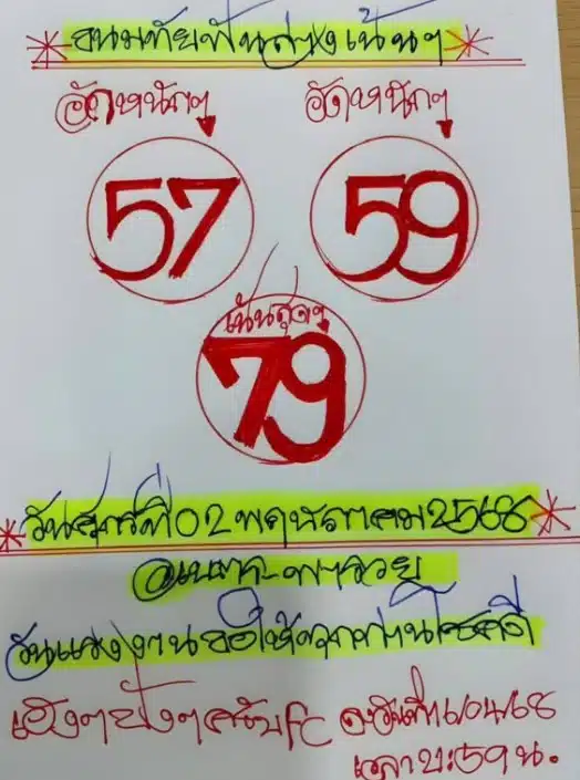 ในงวดนี้ เนตรพารวย ได้เผยชุดเลขสองตัวท้ายที่น่าสนใจ และมีโอกาสแตะเงินแสนให้ได้ลุ้นกันอย่างตื่นเต้น ตัวเลขเด่นที่สำนักนี้ฟันธงออกมาได้แก่ 57, 59 และ 79 ซึ่งแต่ละตัวล้วนมีพลังในตัวของมันเองทั้งด้านโชคลาภและความสำเร็จ จากการวิเคราะห์ของทีมงานสายพลังจิตของเนตรพารวย บอกชัดว่าทั้งสามชุดนี้ผ่านการคัดกรองจากความฝันและสัญญาณแห่งดวงดาวมาอย่างเข้มข้น