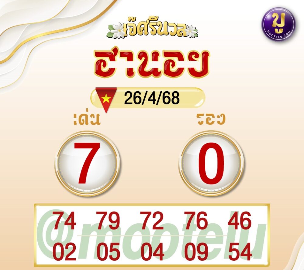 - 74 – 76 – 79 มาแรงจากเจ๊ศรีนวล และยังใกล้กับเลข 75 – 78 ที่เคยออกช่วงก่อน
