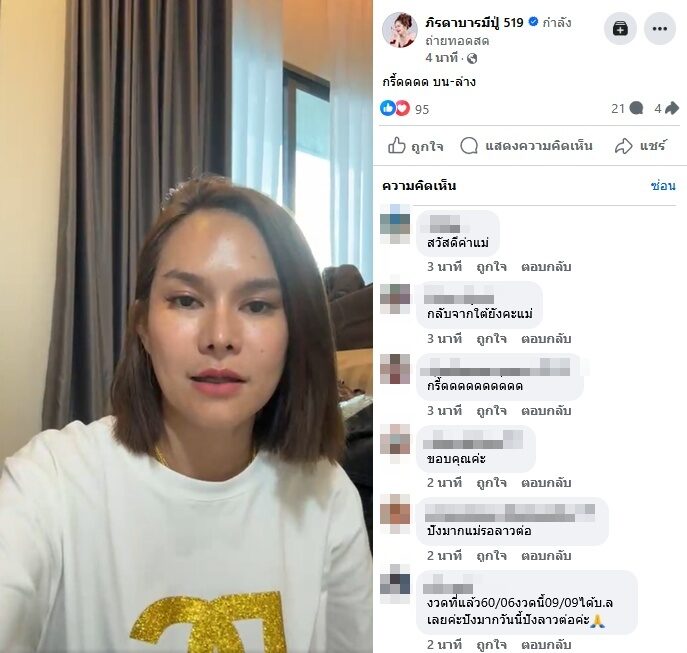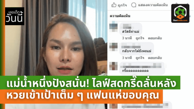 ในไลฟ์สดหลังหวยออก แม่น้ำหนึ่งเปิดกล้องด้วยสีหน้าเปี่ยมสุข พร้อมข้อความแคปชั่นสุดสะใจว่า “กรี๊ดดด บน-ล่าง” ยืนยันความแม่นระดับตำนานที่ยังไม่เปลี่ยนไป แม้เวลาจะผ่านไปกี่งวดก็ตาม โดยในงวดนี้เลขเด่นที่เธอให้ไว้คือ 09 และ 90 ซึ่งตรงกับรางวัลเลขท้ายและเลขบนพอดิบพอดี ทำให้มีแฟน ๆ เข้ามาคอมเมนต์กรี๊ดกร๊าดแบบรัว ๆ อาทิ