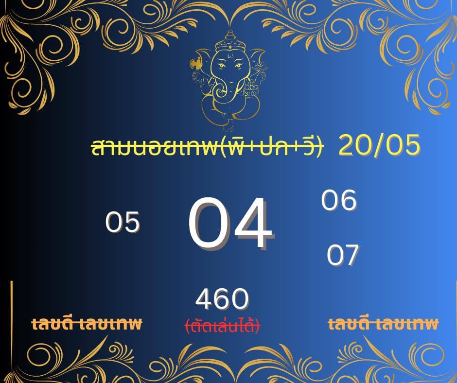 ตัวเด่นที่ควรจับตาเป็นพิเศษได้แก่ 65 – 68 – 75 เพราะปรากฏบ่อยในรอบสถิติเดือนพฤษภาคม