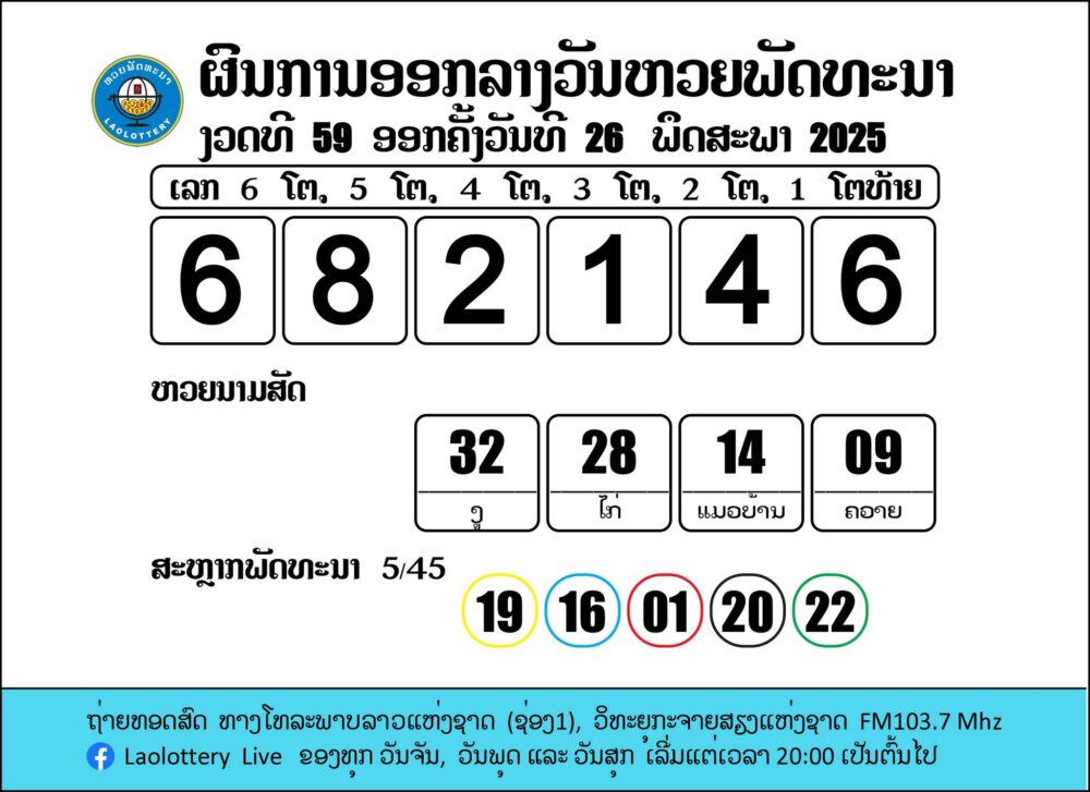 ຖ່າຍທອດສົດການອອກເລກລາງວັນຫວຍພັດທະນາ 26/05/2568