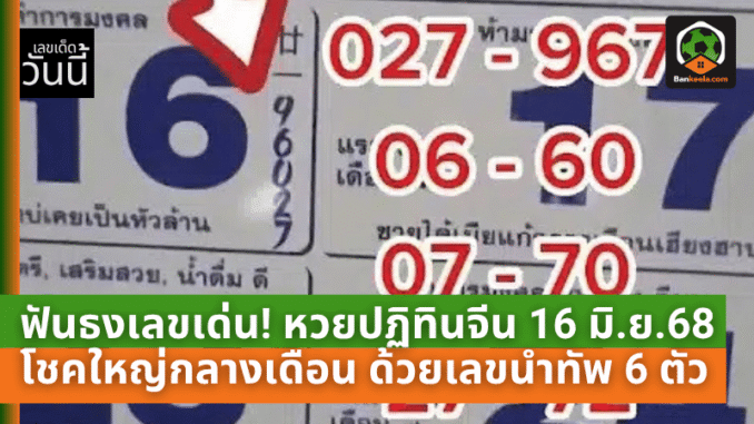 คอหวยเตรียมตัวให้พร้อม! กลับมาอีกครั้งกับ แนวทางหวย จากหนึ่งในแหล่งที่ได้รับการจับตามองมากที่สุดในช่วงหลายงวดที่ผ่านมาอย่าง “หวยปฏิทินจีน” ซึ่งในงวดกลางเดือนมิถุนายนนี้ วันที่ 16 มิถุนายน 2568 ทางปฏิทินจีนก็ได้ปล่อยชุดเลขเด็ดออกมาให้แฟนหวยได้นำไปพิจารณาแบบจัดหนักจัดเต็ม ครบทั้ง เลขเด่น 6 ตัว และชุด เลขท้ายสองตัว 12 ชุด พร้อมเลขท้ายสามตัวอีก 2 ชุด คัดสรรมาแล้วอย่างพิถีพิถันเพื่อให้คอหวยไม่พลาดโอกาสคว้าโชคใหญ่กลางปีนี้