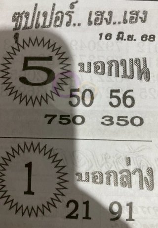 แนวทางหวยซอง ซุปเปอร์เฮงเฮง งวดวันที่ 16 มิถุนายน 2568