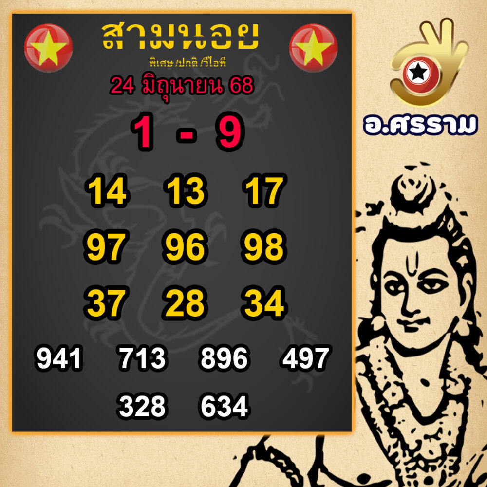 เลขเด่นน่าลุ้น: 95 – 91 – 24 – 98 – 27
