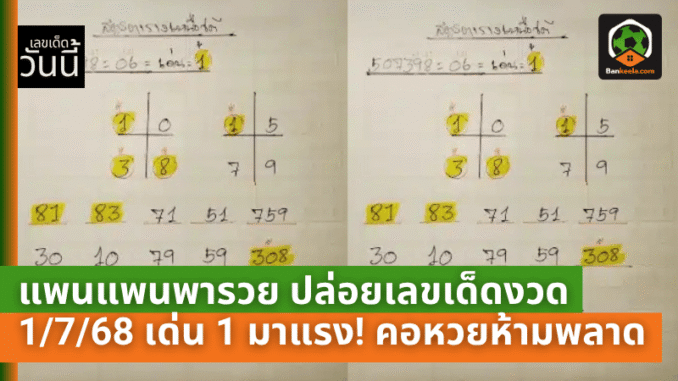 เลขที่น่าสนใจในตารางเด่น : 1 – 0 – 3 – 8 – 5 – 7 – 9