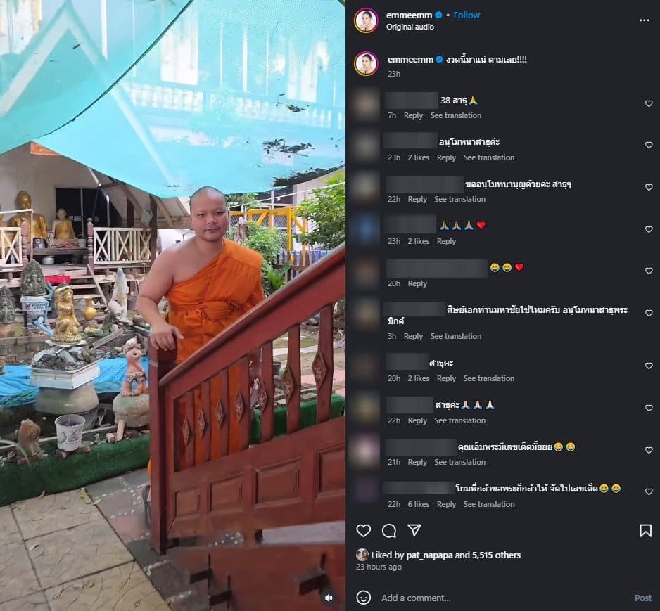 ด้าน เอ็ม บุษราคัม เองก็มั่นใจไม่น้อย โดยเขียนแคปชั่นในโพสต์คลิปว่า “งวดนี้มาแน่ ตามเลย!!!!” พร้อมแฮชแท็ก #เลขเด็ดพระมิกซ์ ซึ่งทำให้บรรดาแฟนคลับแห่กดไลก์ แชร์ และคอมเมนต์กันอย่างล้นหลาม หลายคนถึงกับบอกว่า “ไม่เชื่อก็ต้องลอง” เพราะที่ผ่านมาเลขจากดาราหลายคนก็เคยให้โชคจริงมาแล้วหลายงวด