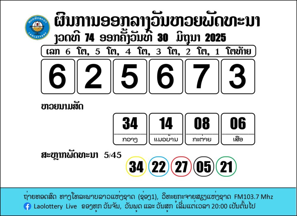 ຖ່າຍທອດສົດການອອກເລກລາງວັນຫວຍພັດທະນາ 30/06/2568