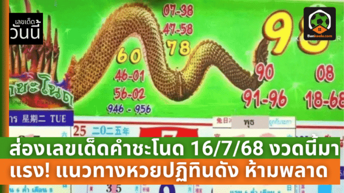 แฟนๆ เลขเด็ด ทั้งสายพญานาคและคอหวยตัวยงห้ามกระพริบตา เพราะงวดวันที่ 16 กรกฎาคม 2568 นี้ ปฏิทินคำชะโนด หนึ่งในแหล่งใบ้หวยขลังที่คนไทยเฝ้าติดตามมาทุกงวด ได้เผย แนวทางหวย ออกมาแล้วเป็นที่เรียบร้อย พร้อมตัวเลขครบทั้งสองตัวและสามตัวแบบจัดเต็ม สำหรับใครที่กำลังตามหาตัวเลขนำโชคไว้เสี่ยงโชคในงวดนี้ ต้องรีบส่อง รีบจด ก่อนที่เลขดังจะหมดแผงไปเสียก่อน