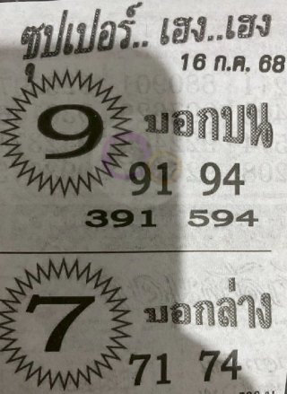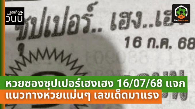 สำหรับงวดวันที่ 16/07/68 ทีมงานได้รวบรวม เลขเด็ดหวยซองซุปเปอร์เฮงเฮง ดังนี้