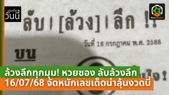 ล้วงลึกทุกมุม! หวยซอง ลับล้วงลึก 16/07/68 จัดหนักเลขเด็ดน่าลุ้นงวดนี้