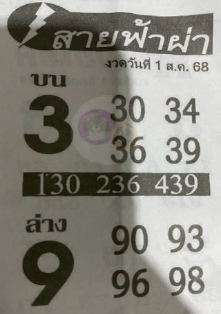 แนวทางหวยบ้านกีฬา: หวยซองสายฟ้าผ่า งวดวันที่ 1 สิงหาคม 2568