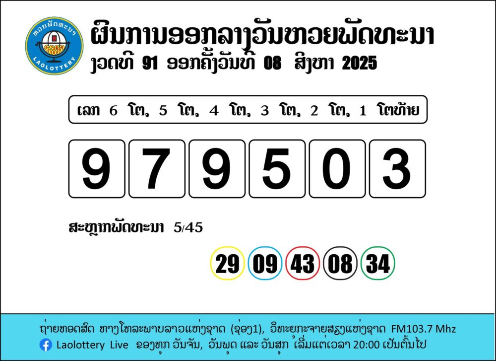 ดูถ่ายทอดสด หวยลาววันนี้ ຫວຍລາວ งวด 08/08/2568