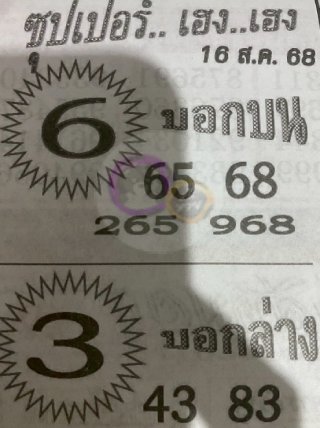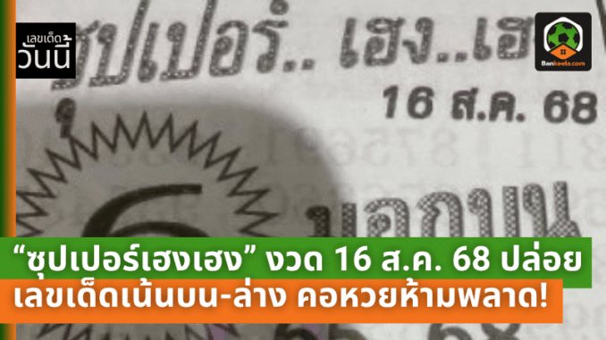 งวดวันที่ 16 สิงหาคม 2568 ที่กำลังจะมาถึงนี้ หวยซองซุปเปอร์เฮงเฮง 16/08/68 ได้ปล่อยชุดเลขมาชัดเจนให้คอหวยได้ลุ้นกันตั้งแต่ต้นงวด โดยแอดมินจากทีมงานบ้านกีฬา ที่เฝ้าตามซองนี้ทุกงวดก็ยืนยันว่ามีแนวโน้มเข้าเป้าไม่น้อย แถมยังเป็นชุดเลขที่มีโอกาสนำไปต่อยอดวิเคราะห์ร่วมกับ แนวทางหวย สำนักอื่นๆ ได้อีกด้วย