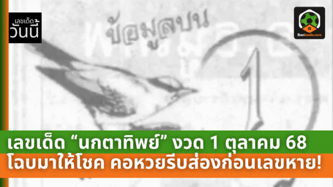 เสียงลือเสียงเล่าอ้างกลับมาสั่นสะเทือนอีกครั้ง เมื่อ เลขเด็ด เจ้าดัง “นกตาทิพย์” ปรากฏตัวพร้อมพาโชคใหญ่บินมาถึงมือแฟนหวยทั่วประเทศ งวดวันที่ 1 ตุลาคม 2568 กำลังใกล้เข้ามาทุกขณะ และงานนี้คอหวยทั้งรุ่นเก่าและรุ่นใหม่ต่างตั้งตารอเลขจากสำนักนี้เป็นพิเศษ เพราะชื่อของ “นกตาทิพย์” การันตีความแม่นยำมาแล้วหลายต่อหลายงวด จนถูกขนานนามว่าเป็นสัญลักษณ์แห่งความหวังของนักเสี่ยงโชค