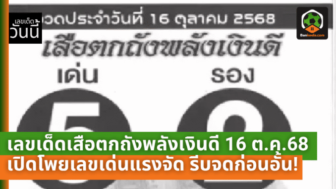 เลขเด็ดเสือตกถังพลังเงินดี 16 ตุลาคม 68 เปิดโพยโค้งสุดท้าย เลขเด่นแรงจัด รีบจดก่อนอั้น!
