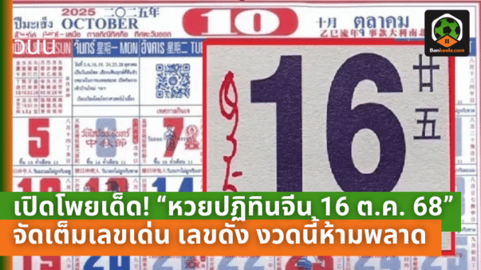 เปิดโพยเด็ด! “หวยปฏิทินจีน 16 ตุลาคม 68” จัดเต็มเลขเด่น เลขดัง งวดนี้คอหวยห้ามพลาด