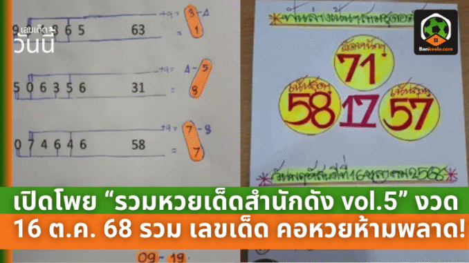 เปิดโพย “รวมหวยเด็ดสำนักดัง vol.5” งวด 16 ต.ค. 68 รวม เลขเด็ด แรงจัดจ้าน คอหวยห้ามพลาด!