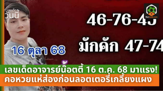 วงการหวยสั่นสะเทือนอีกครั้งเมื่อ เลขเด็ด จากสำนักดังอย่าง “อาจารย์น๊อตตี้” ถูกปล่อยออกมาอย่างเป็นทางการ คอหวยไทยทั่วประเทศต่างพากันจับตาอย่างใกล้ชิด เพราะทุกครั้งที่สำนักนี้เปิดแนวทาง มักจะสร้างเศรษฐีหน้าใหม่มาแล้วนับไม่ถ้วน และงวดวันที่ 16 ตุลาคม 2568 นี้ก็ไม่ต่างกัน บรรยากาศแผงลอตเตอรี่ทั่วประเทศเริ่มคึกคักขึ้นทันทีหลังแนวทางถูกเผยแพร่ออกไป