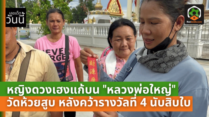 ความโชคดีครั้งใหญ่ส่งตรงถึงหญิงวัย 50 ปีที่ไม่พลาดโอกาสทอง! นางประกาย พรพิฆเนตร ชาวบ้านผู้โชคดีจาก จังหวัดชลบุรี ตัดสินใจเดินทางมาแก้บนที่วัดห้วยสูบ อำเภอพนัสนิคม หลังคว้ารางวัลที่ 4 จำนวนถึง 10 ใบ ทำเอาทั้งวัดครึกครื้นกับเสียงประทัดกว่า 5,000 นัดที่ถูกจุดถวาย หลวงพ่อใหญ่ เพื่อแสดงความขอบคุณ พร้อมเผยเลขเด็ดที่ได้จากการจุดประทัดเพื่อให้ชาวบ้านนำไปเสี่ยงโชคในงวดถัดไป