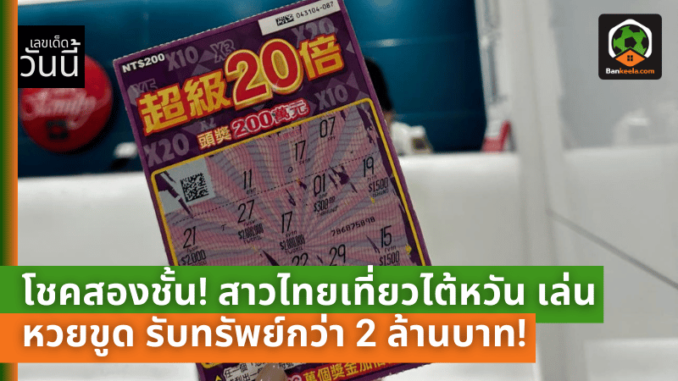 ข่าวดีที่ทำเอาคนไทยต้องอิจฉาตาร้อน! Mirrormedia สื่อดังของไต้หวันรายงานถึง อภิญญา พงศ์พจมาน สาวสวยจากประเทศไทยที่เดินทางไปท่องเที่ยวที่ไต้หวัน แต่ดวงของเธอกลับเฮงเป็นสองเท่า! โดยเริ่มต้นจากการที่เธอตัดสินใจซื้อหวย Lucky Draw เพื่อเล่นสนุกๆ และโชคดีก็เข้าข้างเธอทันที เมื่อเธอถูกรางวัลเงินสดจำนวน 5,000 ดอลลาร์ไต้หวัน หรือประมาณ 5,000 บาท ซึ่งคิดจากอัตราแลกเปลี่ยน 1 TWD = 1.07 บาท