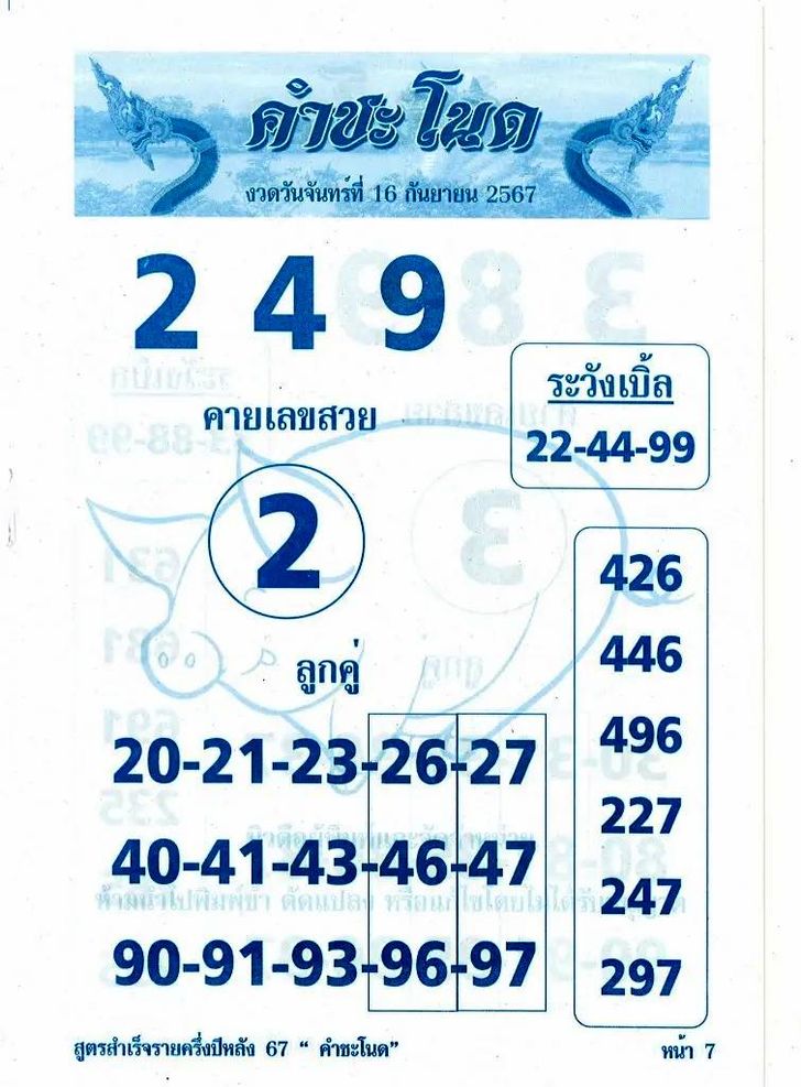 - เลขเบิ้ลที่ควรระวัง: 22 – 44 – 99