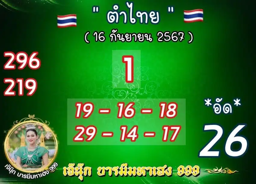 แนวทางเลขเด็ดจาก เจ๊นุ๊ก บารมีมหาเฮง งวดวันที่ 16 กันยายน 2567