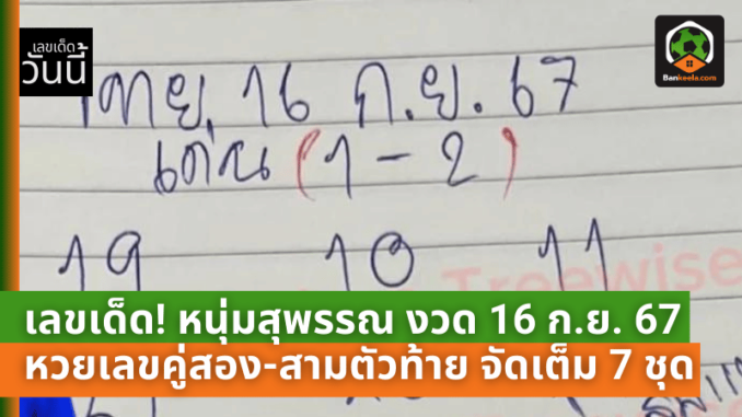 หวยเด็ด หนุ่มสุพรรณ 16/9/67