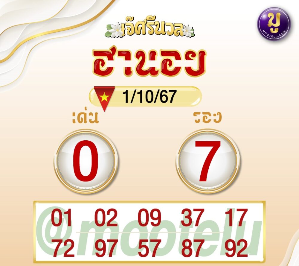 ต่อด้วยแนวทางจาก เจ๊ศรีนวล ที่วิเคราะห์มาอย่างละเอียด วันนี้เลขเด่นคือ 0 และเลขรองคือ 7 ชุดเลขที่น่าสนใจมีดังนี้: