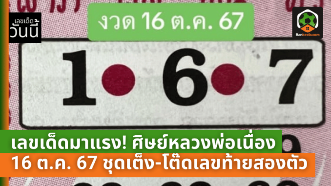 เลขเด็ด ศิษย์หลวงพ่อเนื่อง งวด 16 ตุลาคม 2567
