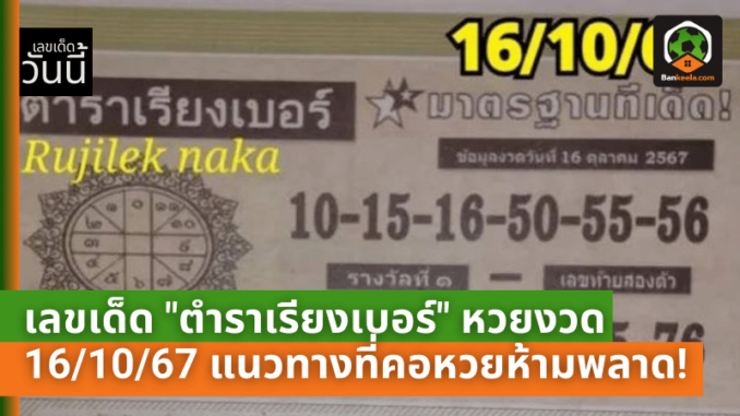 ใกล้เข้ามาแล้วกับการประกาศผล สลากกินแบ่งรัฐบาล งวดวันที่ 16 ตุลาคม 2567 ที่คอหวยทั่วประเทศต่างรอคอยอย่างใจจดใจจ่อ! เหล่านักเสี่ยงโชคต่างเสาะหา เลขเด็ด ที่เชื่อว่าจะนำพาโชคดีมาให้ หลายคนหันไปหาเลขเด็ดจากแหล่งต่าง ๆ ทั้ง เลขจากคนดัง, เลขดังจากโซเชียล, หรือแม้กระทั่ง เลขเด็ดจากปฏิทินจีน ที่ได้รับความนิยมอย่างมากในช่วงที่ผ่านมา ซึ่งแต่ละแหล่งก็มีผู้ติดตามจำนวนไม่น้อย