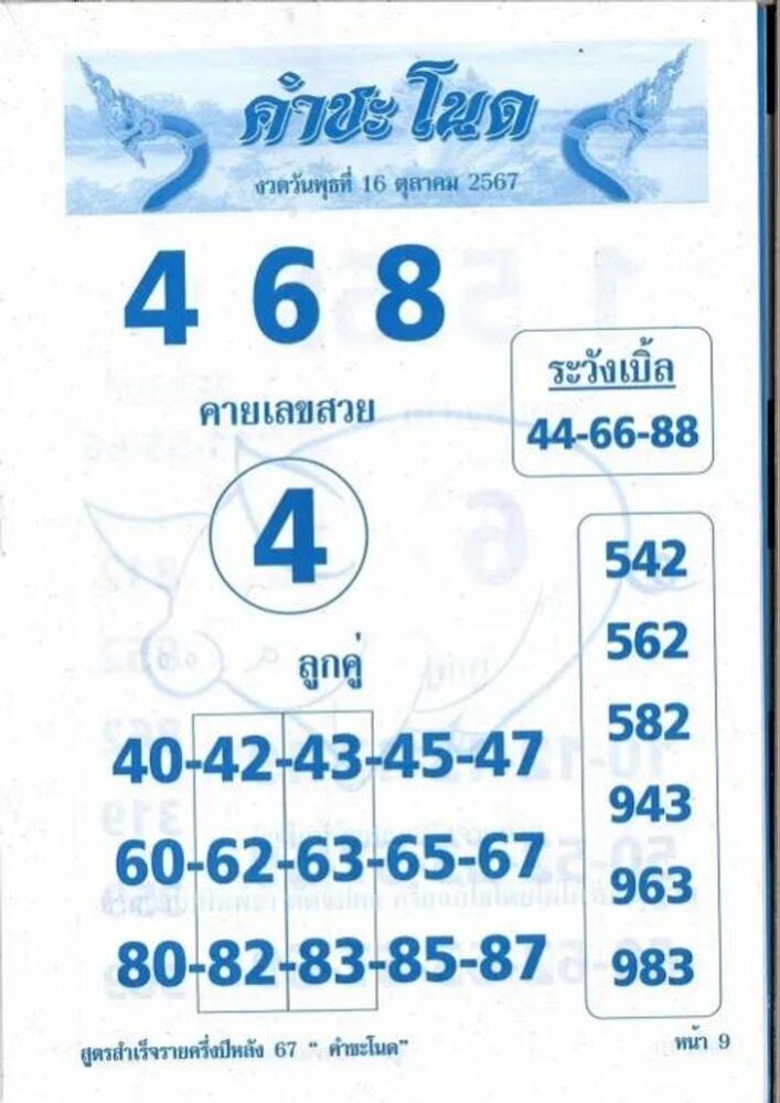 สำหรับงวดนี้ เลขเด็ดคำชะโนด ประจำงวดวันที่ 16 ตุลาคม 2567 เน้นไปที่เลขเด่น 4 โดยมีตัวเลขสวยที่คอหวยควรพิจารณาเป็นพิเศษ ได้แก่ 4, 6, และ 8 ซึ่งเป็นเลขที่มาแรงและอาจมีโอกาสสูงในการออกรางวัล อย่างไรก็ตาม เหล่าคอหวยต้องเพิ่มความระมัดระวังเป็นพิเศษในเรื่องของ เลขเบิ้ล ซึ่งมาแรงในงวดนี้เช่นกัน ได้แก่ 44, 66, และ 88 เนื่องจากมีแนวโน้มว่าอาจจะเป็นเลขที่ปรากฏในการออกรางวัลในครั้งนี้
