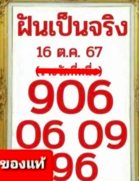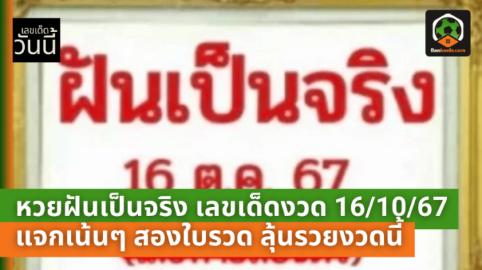 เลขเด็ดฝันเป็นจริง งวดนี้ 16 ตุลาคม 2567