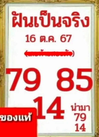สำหรับหวย ฝันเป็นจริง งวดนี้ได้ปล่อยแนวทางมาให้เลือกกันแบบครบถ้วน ใครที่ชื่นชอบตัวเลขและต้องการเลขที่แม่นๆ มาลุ้นโชคกลางเดือนห้ามพลาด โดยเลขที่น่าสนใจได้แก่: