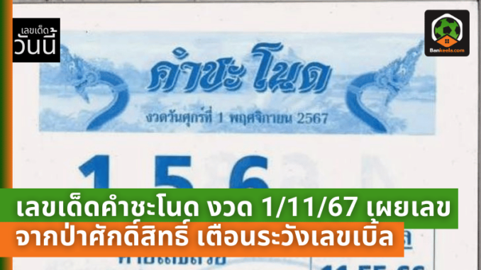 Sanook News ได้รวบรวม เลขเด็ดคำชะโนด ที่เชื่อว่าเป็นลายแทงนำโชคสำหรับงวดนี้ โดยงวดวันที่ 1 พฤศจิกายน 2567 เลขที่เด่นและน่าสนใจ ได้แก่ 1, 5, และ 6 ซึ่งเป็นเลขที่มาแรงในช่วงนี้ แต่ก็มีคำเตือนเพิ่มเติมให้คอหวยระวัง เลขเบิ้ล ที่อาจจะโผล่มาในงวดนี้ ได้แก่ 11, 55, และ 66 ซึ่งเป็นตัวเลขที่ควรจับตาและพิจารณาเป็นพิเศษ เพราะมีโอกาสสร้างเซอร์ไพรส์ในการออกรางวัลได้เช่นกัน