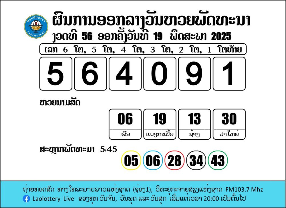 ຖ່າຍທອດສົດການອອກເລກລາງວັນຫວຍພັດທະນາ 19/5/2025