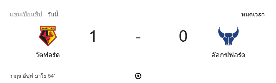- ⚽ นาทีที่ 54: วาคุน อิซุฟ บาโย ยิงประตูให้ วัดฟอร์ด ขึ้นนำ 1-0