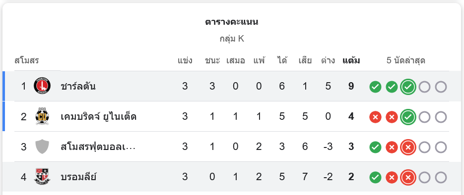 สถานการณ์ในตารางคะแนน
