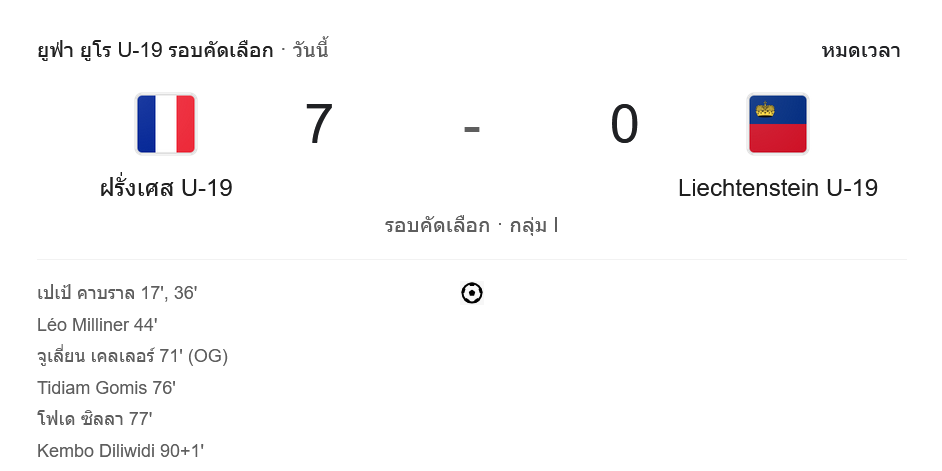 - ⚽ นาทีที่ 36: เปเป้ คาบรา ทำประตูที่สองให้ฝรั่งเศสนำ 2-0