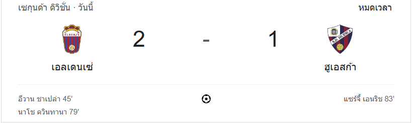 ผลบอลสด เซกุนด้า ดิวิชั่น 2024 ระหว่าง ทีม เอลเดนเซ่ vs ฮูเอสก้า 21/11/67 ดูบอลย้อนหลัง คลิปไฮไลท์ ดูบอลเซกุนด้า ดิวิชั่น 2024