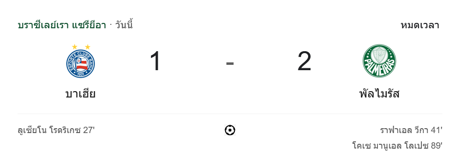- ⚽ นาทีที่ 89: โฆเซ่ โลเปซ ยิงประตูชัยให้พัลไมรัสนำ 2-1