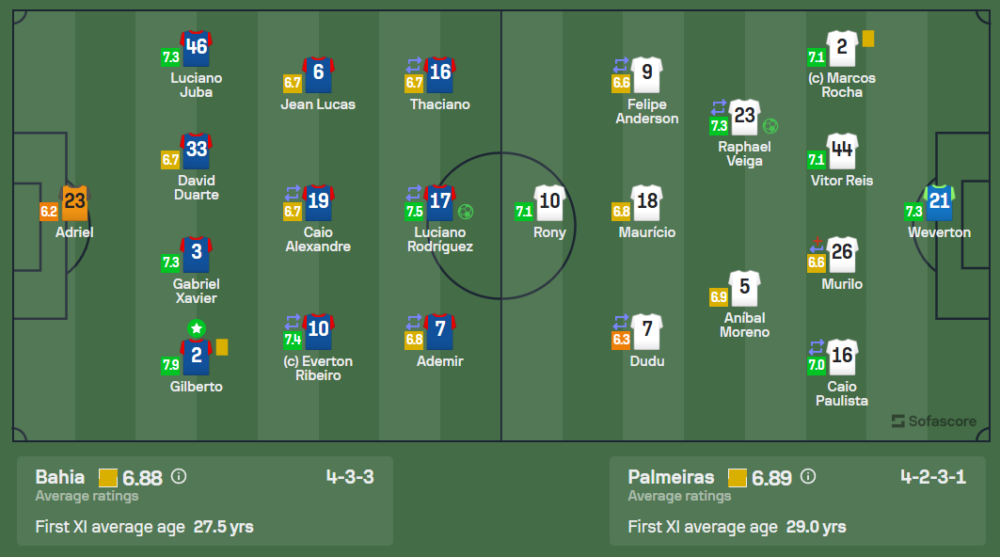 บาเฮียเลือกใช้แผน 4-3-3 ที่เน้นการเล่นเกมรุกด้วยความเร็วและการโจมตีจากปีกทั้งสองข้าง โดยมี กิลแบร์โต้ เป็นตัวคีย์แมนในการสร้างเกมรุก ส่วนพัลไมรัสใช้แผน 4-2-3-1 ซึ่งเน้นการครองบอลและการเล่นอย่างรัดกุมในแดนกลาง โดยมี ราฟาเอล เวย์ก้า เป็นจุดเด่นในการสร้างสรรค์เกม พัลไมรัสมีความแม่นยำในการส่งบอลมากกว่าที่ 79% เทียบกับบาเฮียที่ 82% แต่บาเฮียครองบอลได้มากกว่าที่ 58% ขณะที่พัลไมรัสเน้นการเล่นสวนกลับเป็นหลัก