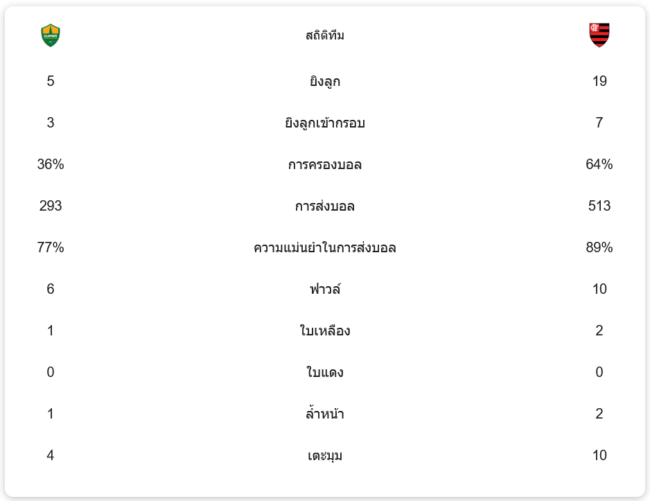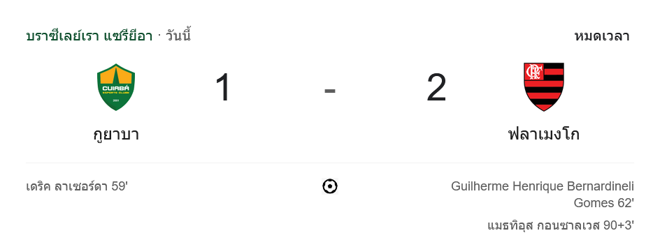 • ⚽ นาทีที่ 90+3: มาธิอุส กอนคาลเวส ยิงประตูชัยให้ฟลาเมงโก 2-1