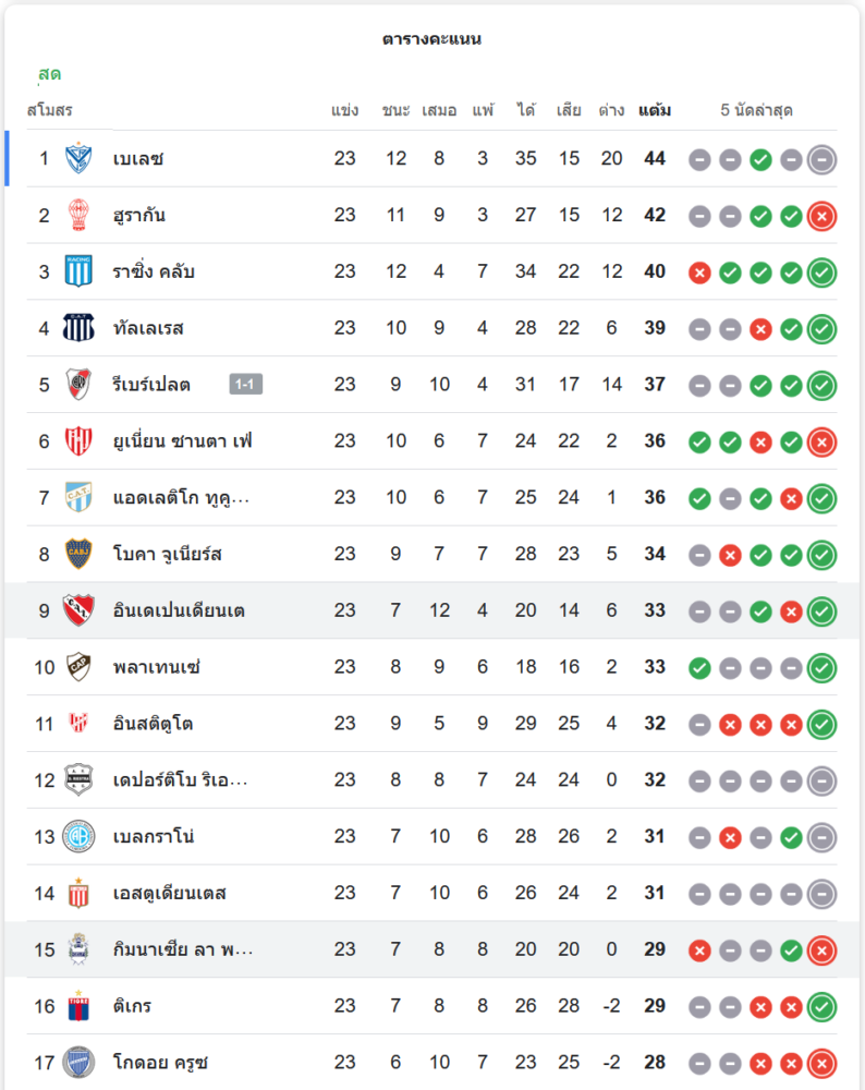 อินดิเพนเดนเต้ขยับขึ้นมาที่อันดับ 9 ด้วยคะแนน 33 แต้ม ส่วนกิมนาเซีย ลา พลาต้า ยังคงรั้งอันดับ 15 มี 29 คะแนนใน ตารางบอล อาร์เจนตินา พรีเมียร์ดิวิชั่น 2024