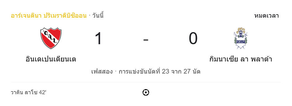 เกมการแข่งขันที่เต็มไปด้วยความดุเดือดในศึก อาร์เจนตินา พรีเมียร์ดิวิชั่น 2024 จบลงด้วยชัยชนะของ อินดิเพนเดนเต้ ที่สามารถเอาชนะ กิมนาเซีย ลา พลาต้า ไปได้ 1-0 จากลูกโหม่งของ โฮอาคิน ลาโซ นาทีที่ 42 แม้ว่ากิมนาเซียจะมีโอกาสครองบอลและสร้างเกมได้เหนือกว่า แต่การจบสกอร์ที่เฉียบขาดของอินดิเพนเดนเต้ ทำให้พวกเขาเก็บสามแต้มสำคัญได้สำเร็จ