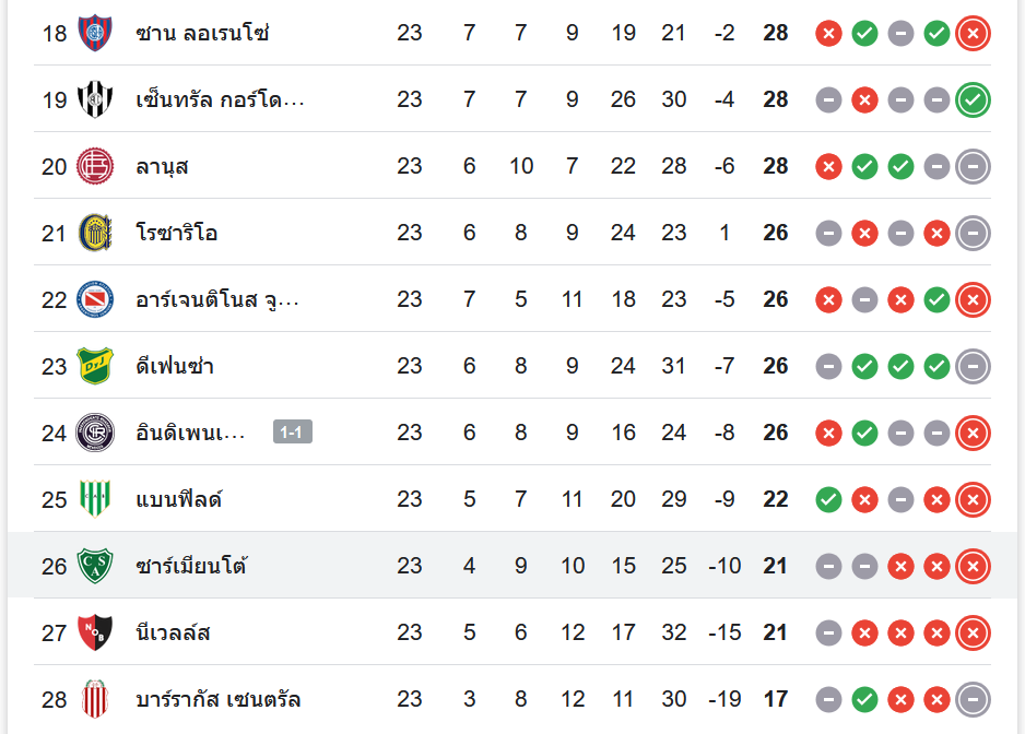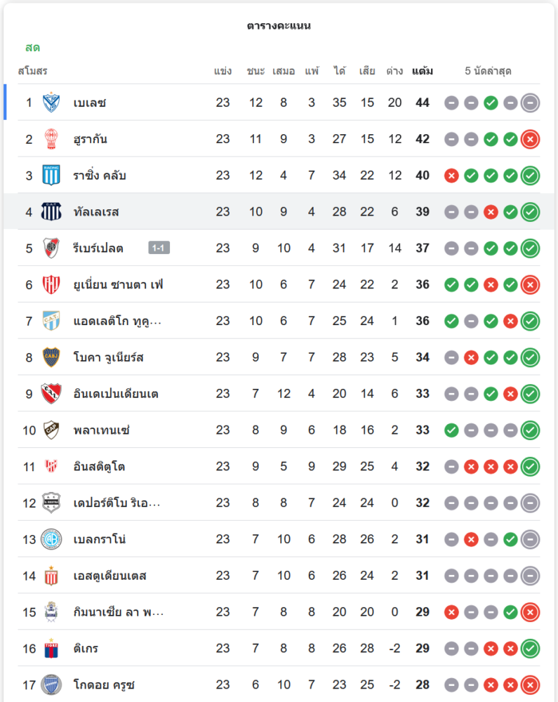 ทัลเลเรส ขยับขึ้นมาอยู่อันดับ 4 ด้วยคะแนน 39 แต้ม ขณะที่ซาร์เมียนโต้ยังคงอยู่ในโซนท้ายตารางอันดับที่ 26 มีเพียง 21 แต้ม