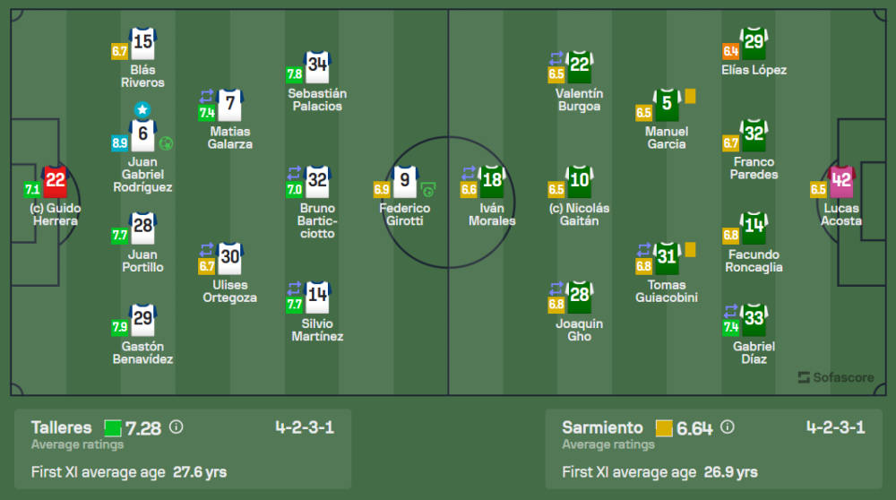 ทัลเลเรสใช้แผน 4-2-3-1 ที่เน้นการครองบอลและความแม่นยำในการจ่ายบอลถึง 83% โดยมี บรูโน บาร์ติซิออตโต และ เซบาสเตียน ปาลาซิออส คอยปั้นเกม ซาร์เมียนโต้มาในระบบเดียวกัน แต่การจ่ายบอลแม่นยำที่ 77% และโอกาสยิงเข้ากรอบเป็นศูนย์ ส่งผลให้พวกเขาไม่สามารถเจาะแนวรับของทัลเลเรสได้